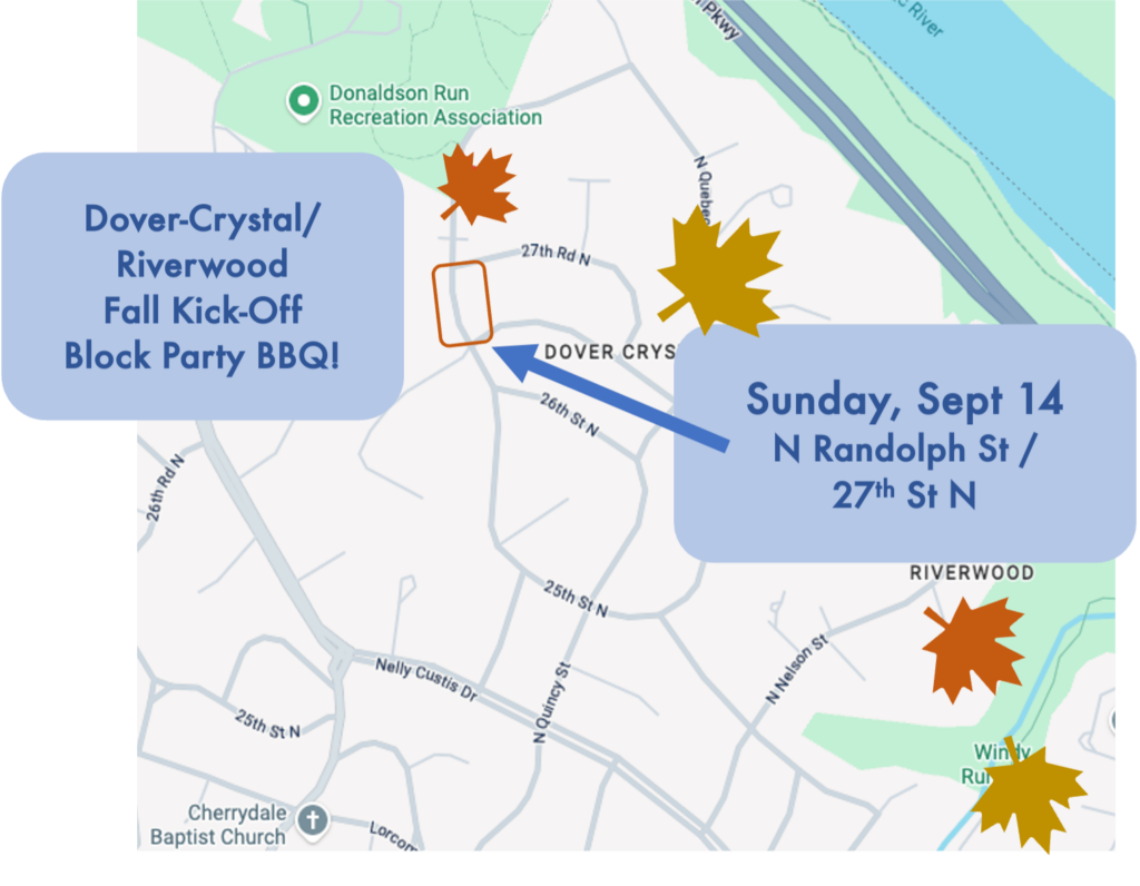 Joint Dover-Crystal/Riverwood Memorial Day Block Party | Sunday, June 1 | 4:00 – 7:00 PM | Intersection of N Randolph St & 27th St N |